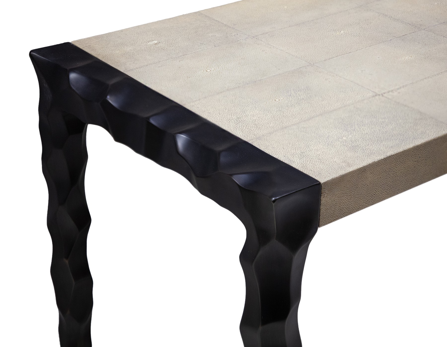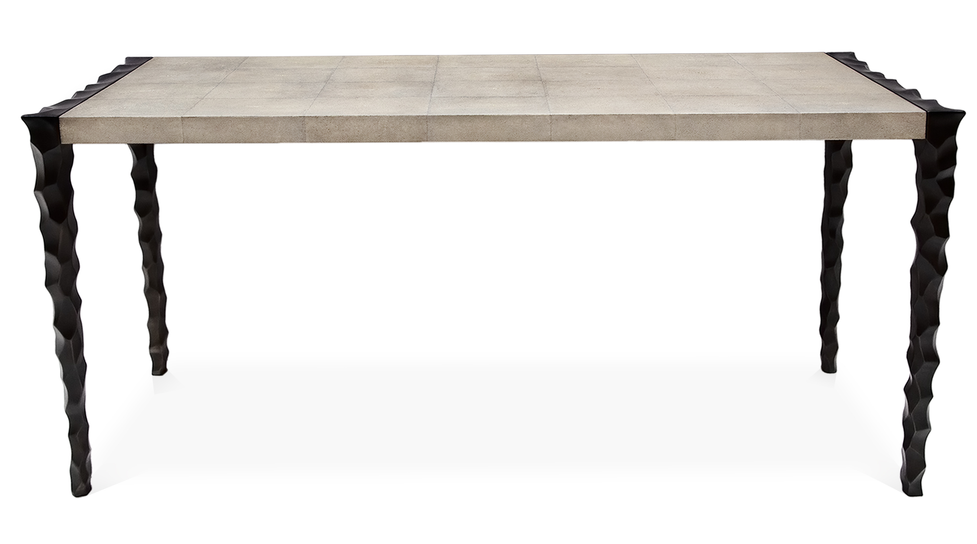 sand cast base with deeply sculpted surface texture and applied finish top