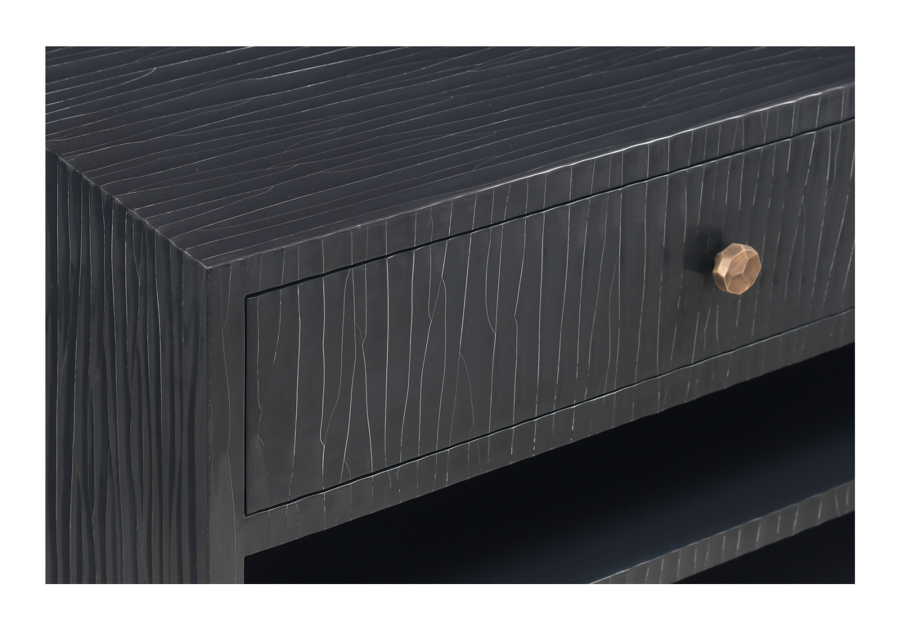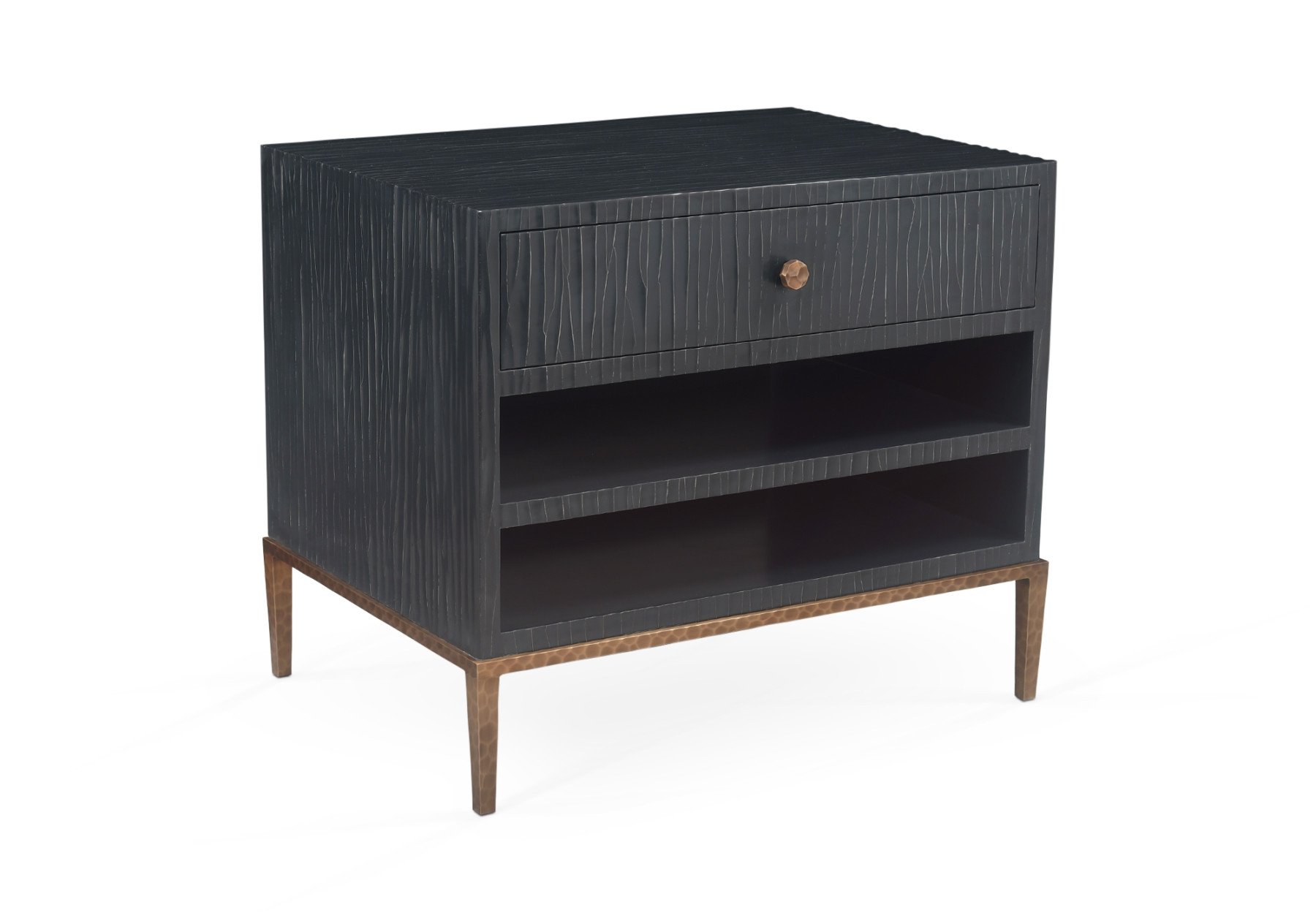single drawer cabinet with open sections below, cracked linen finish