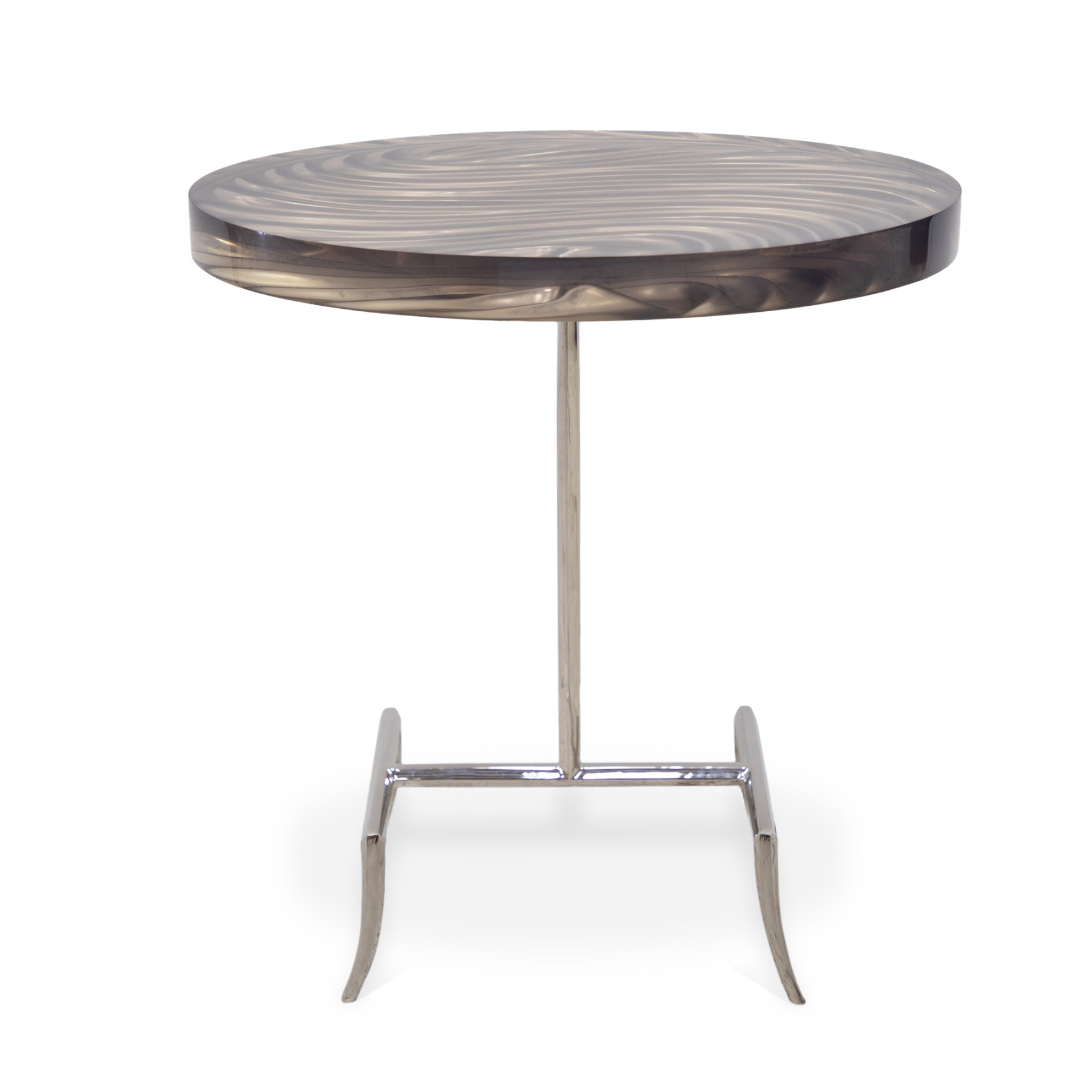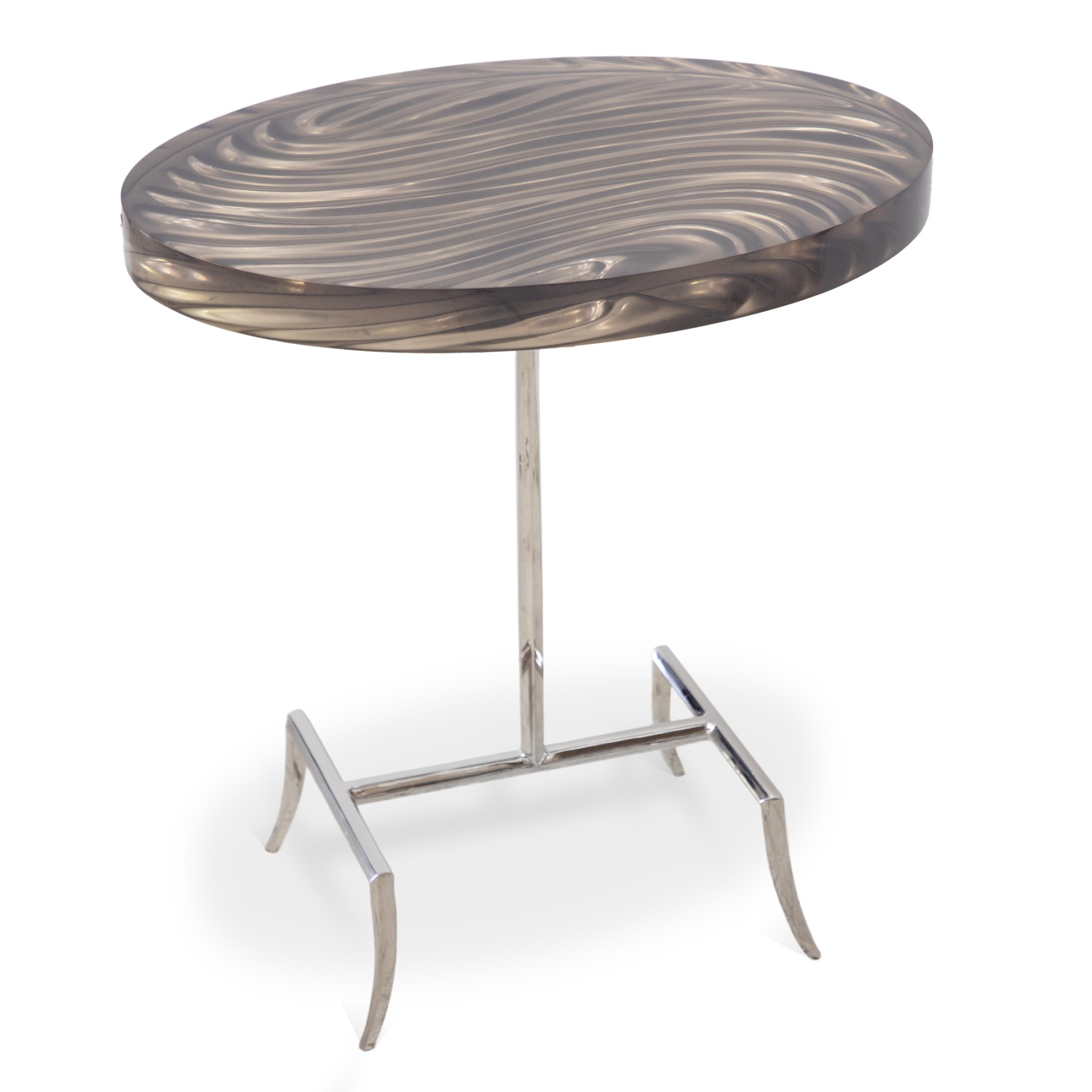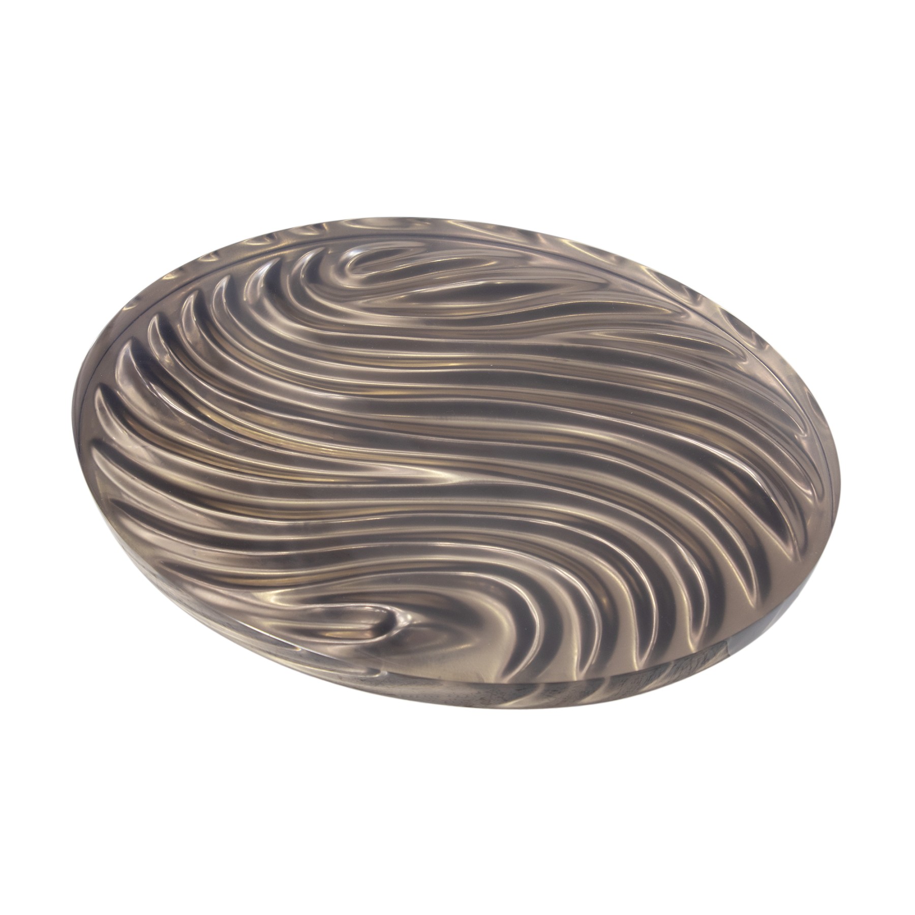 translucent cast resin oval top with reflective water pattern, sand cast brass base