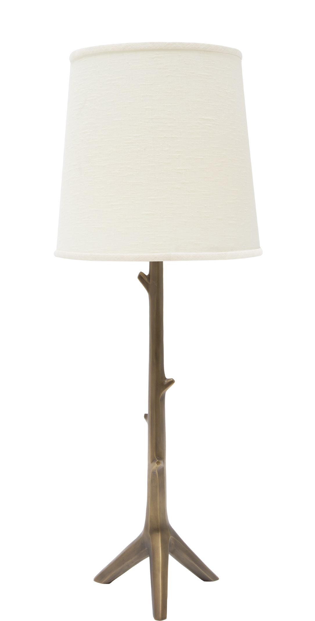 Hewn branch motif in cast brass with linen shade
