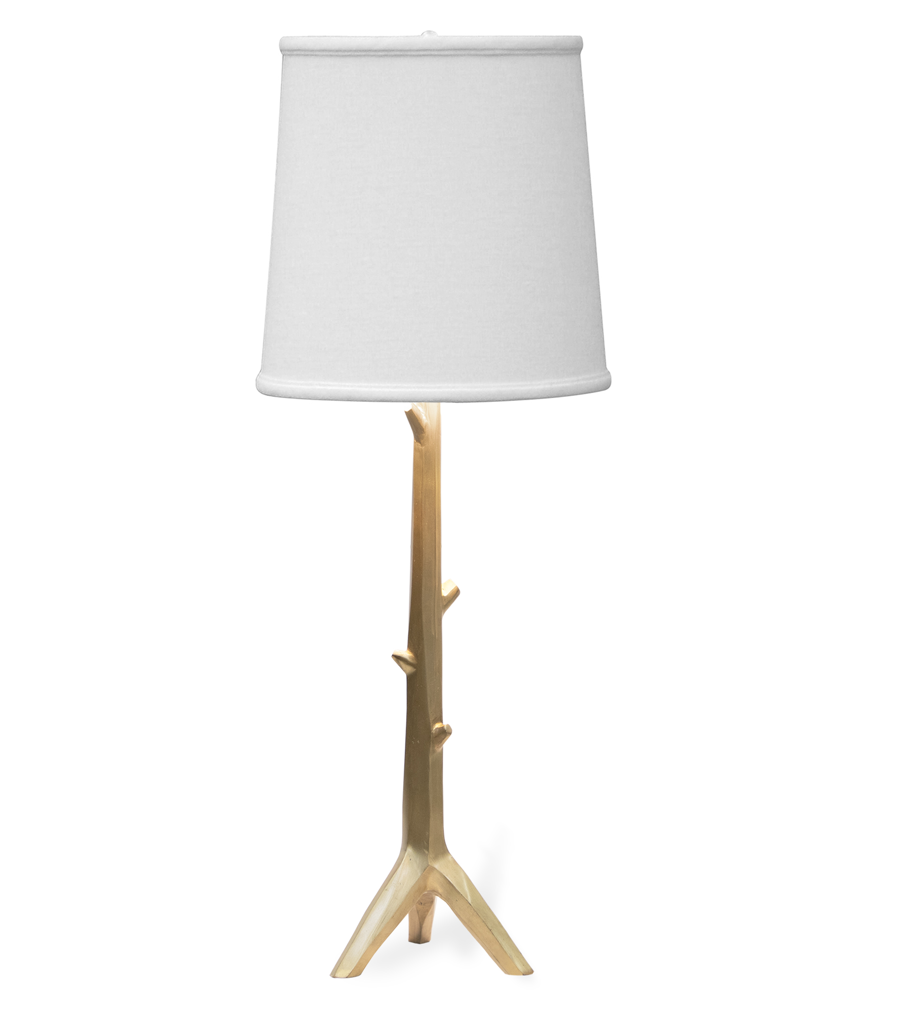 Hewn branch motif in cast brass with linen shade