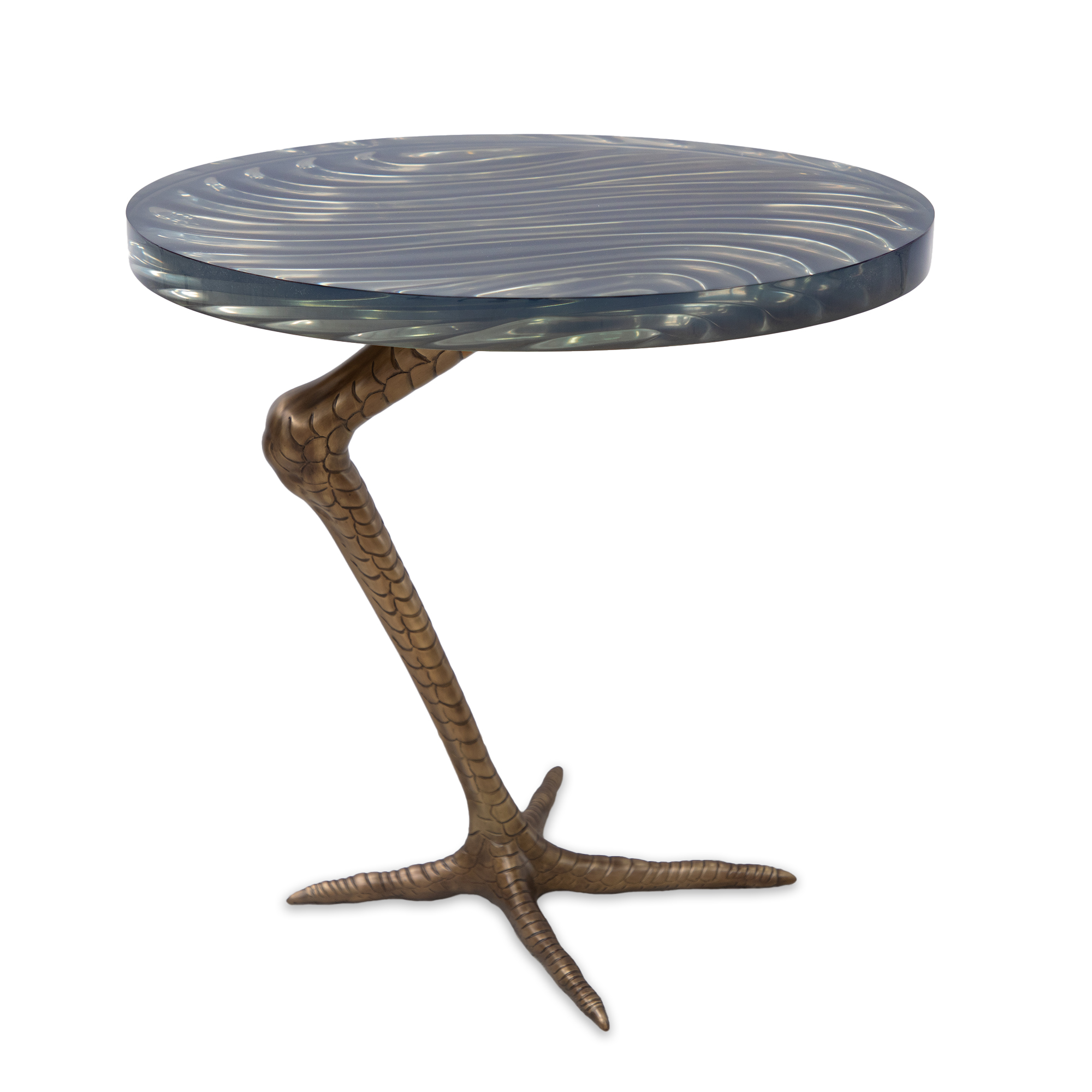 sand cast brass base with sculpted avian leg,
