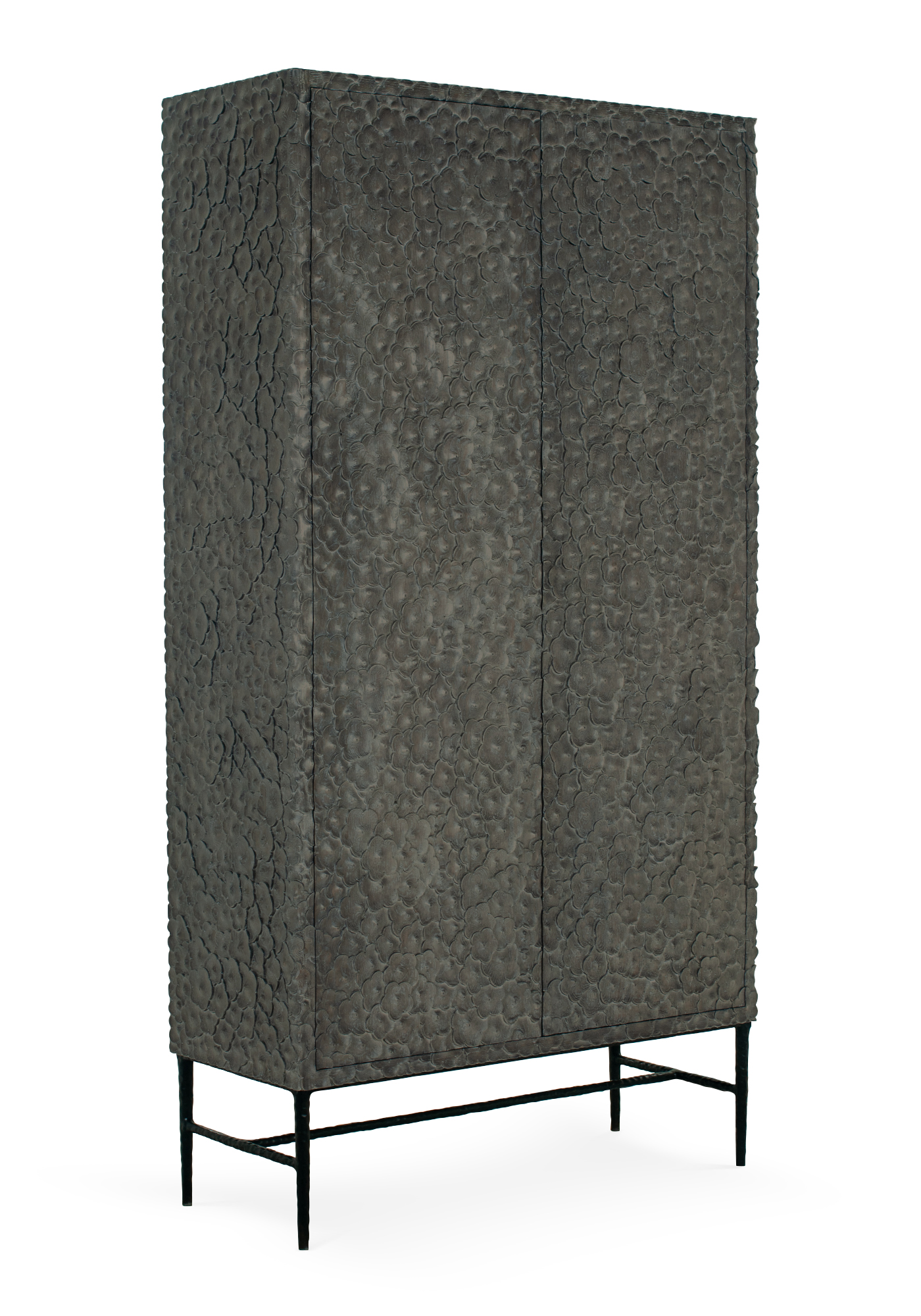 Hardwood cabinet encased with hand-carved flowers,